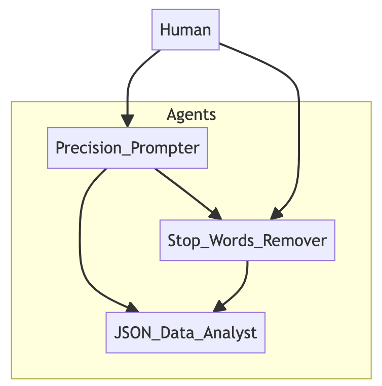 This agent pre-processes the JSON file to strip out these stop words, making the word clouds much more meaningful and focused.